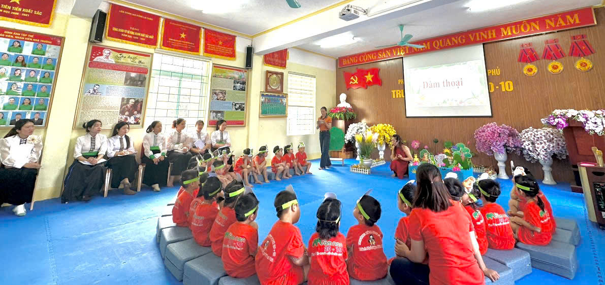 Giảng viên và sinh viên trường CĐSP Điện Biên dự giờ dạy mẫu lớp Mẫu giáo Nhỡ trường Mầm non 20/10