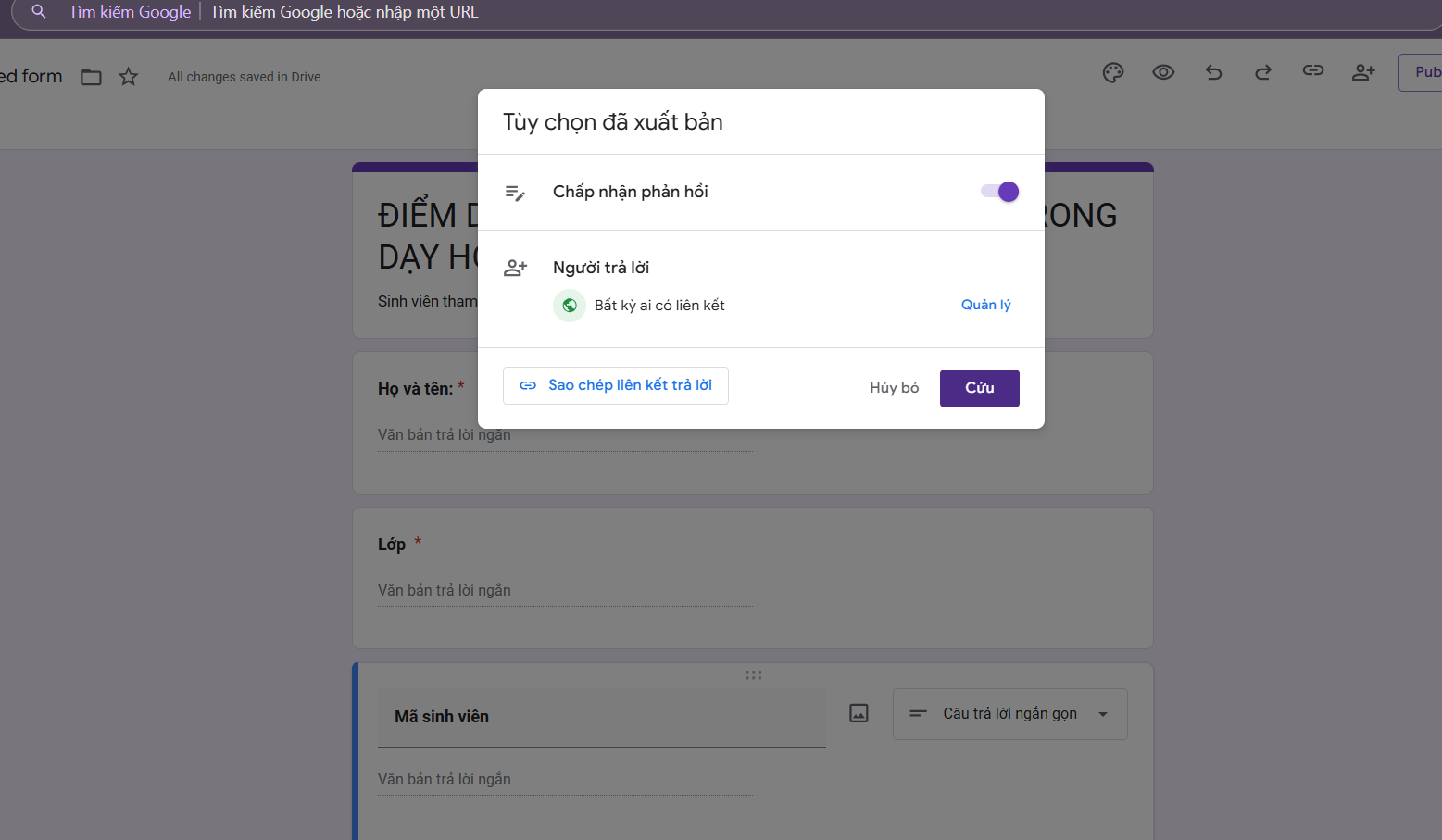Sau khi tạo mẫu, sao chép đường link mẫu: