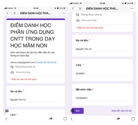 Thiết lập biểu mẫu điểm danh bằng cách sử dụng google form qua đường link https://docs.google.com.