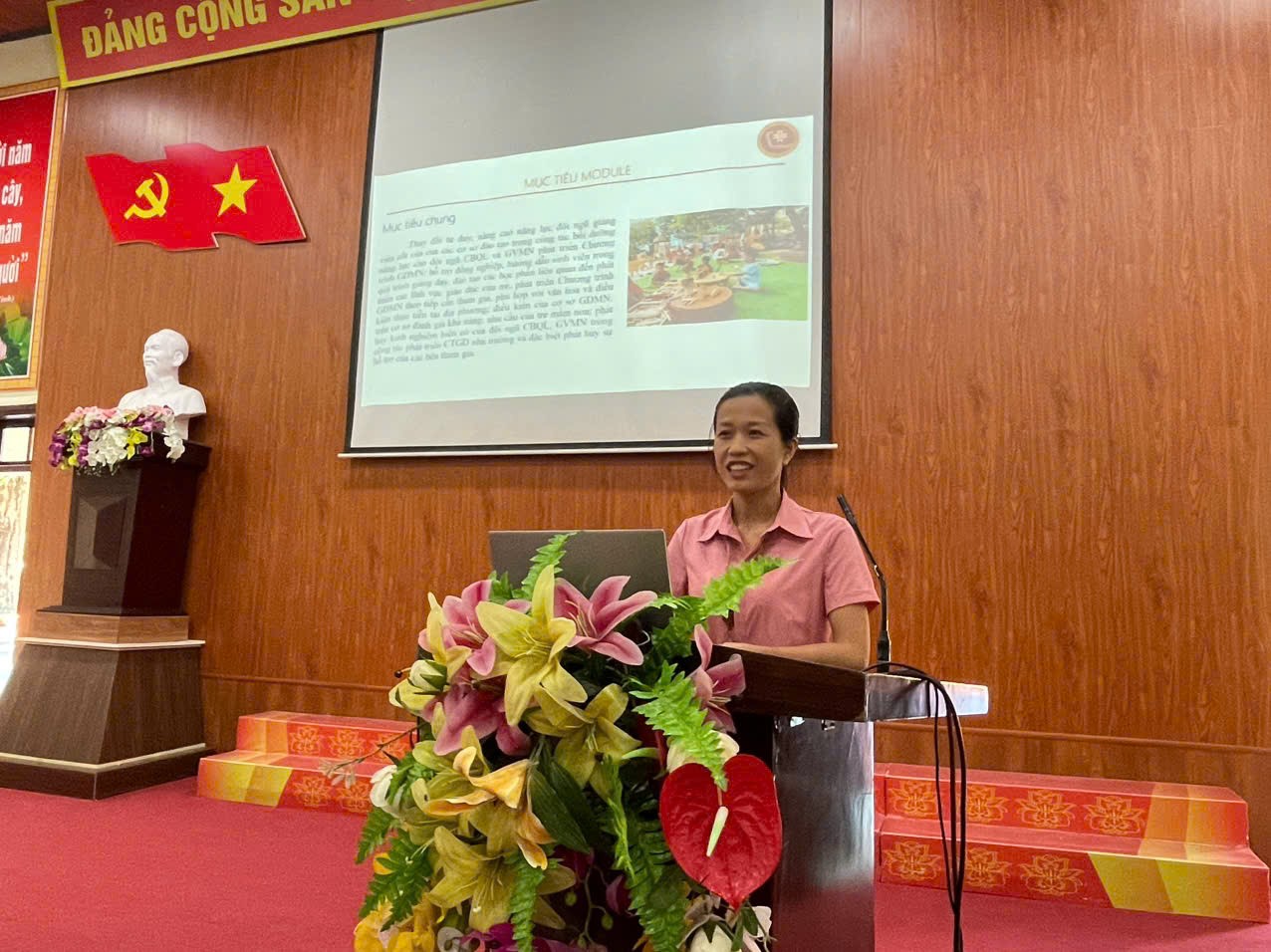 ThS. Nguyễn Thị Hồng Thúy triển khai nội dung chuyên đề bồi dưỡng.