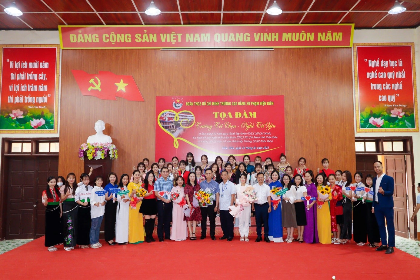 Ba là, tổ chức toạ đàm “Trường tôi chọn, nghề tôi yêu”. Đây là hoạt động ý nghĩa khơi dậy niềm tự hào, củng cố niềm tin, tình yêu với ngành nghề, lĩnh vực đã lựa chọn; truyền cảm hứng, chia sẻ quá trình lập thân, lập nghiệp của các cựu đoàn viên đã trưởng thành từ Trường Cao đẳng Sư phạm Điện Biên cho đoàn viên sinh viên đang học tập tại trường. Đây cũng là hoạt động thiết thực hướng tới 60 năm thành lập Trường CĐSP Điện Biên.