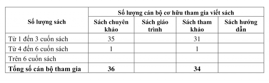 Số lượng cán bộ cơ hữu của nhà trường tham gia viết sách trong 5 năm gần đây: