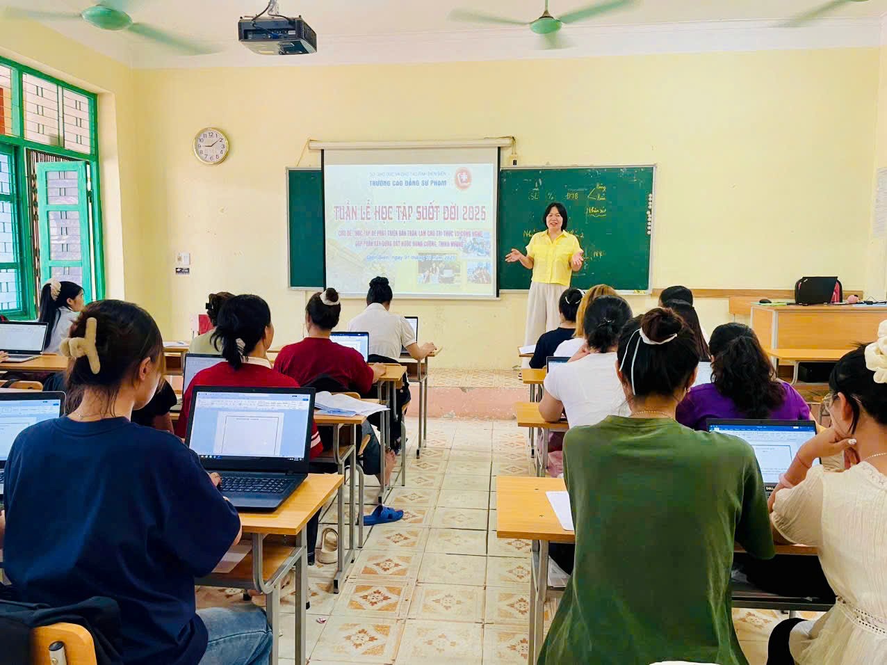 Trên tinh thần đó ngày 01/10/2025, Trường Cao đẳng Sư phạm Điện Biên đã tổ chức khai mạc Tuần lễ hưởng ứng học tập suốt đời năm 2025 với chủ đề “Học tập để phát triển bản thân, làm chủ tri thức và công nghệ, góp phần xây dựng đất nước hùng cường và thịnh vượng”, nhằm nâng cao nhận thức của cán bộ, viên chức, người lao động và sinh viên về vai trò, ý nghĩa của việc học tập, đặc biệt là tự học và học tập suốt đời gắn với việc làm chủ tri thức và công nghệ đối với sự phát triển của mỗi cá nhân; từ đó phát huy sức mạnh con người Việt Nam, phục vụ sự nghiệp phát triển nhanh, bền vững của đất nước trong bối cảnh chuyển đổi số, hội nhập quốc tế.