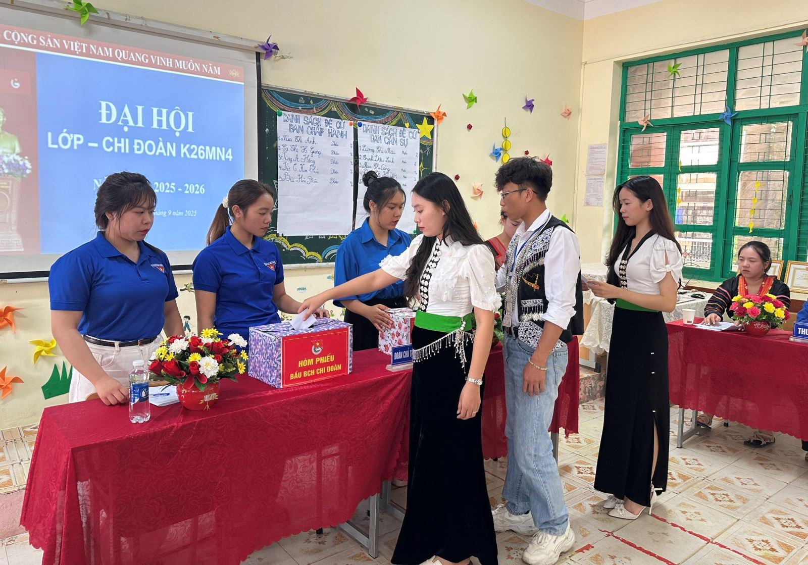 Thực hiện Kế hoạch số 584/KH-CĐSP của Trường Cao đẳng Sư phạm Điện Biên về việc tổ chức Đại hội Lớp – Chi đoàn năm học 2025 – 2026, chiều ngày 25/9/2025, các khối lớp K26, K27 khoa Giáo dục Mầm non đã long trọng tổ chức Đại hội Lớp – Chi đoàn. Đây là sự kiện chính trị quan trọng, có ý nghĩa đối với sinh viên toàn khoa trong việc đánh giá kết quả hoạt động và đề ra phương hướng cho năm học mới.