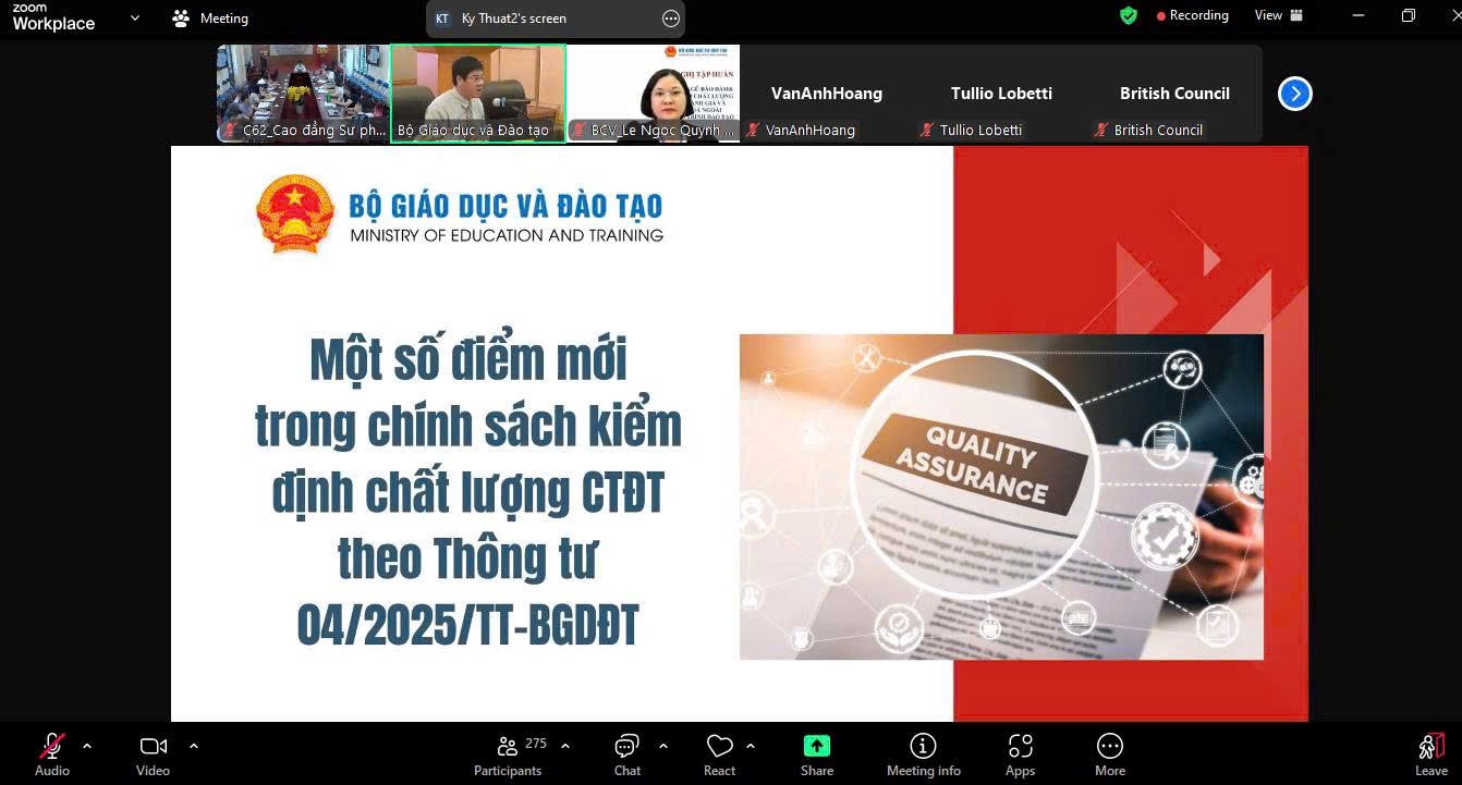 Hội nghị tập trung phổ biến, cập nhật và hướng dẫn về các điểm mới trong chính sách, quy trình và hoạt động tự đánh giá – đánh giá ngoài chương trình đào tạo theo Thông tư số 04/2025/TT-BGDĐT. Đây là hoạt động quan trọng, góp phần nâng cao nhận thức, năng lực và sự sẵn sàng của các cơ sở giáo dục trong công tác đảm bảo chất lượng theo các chuẩn mực mới.