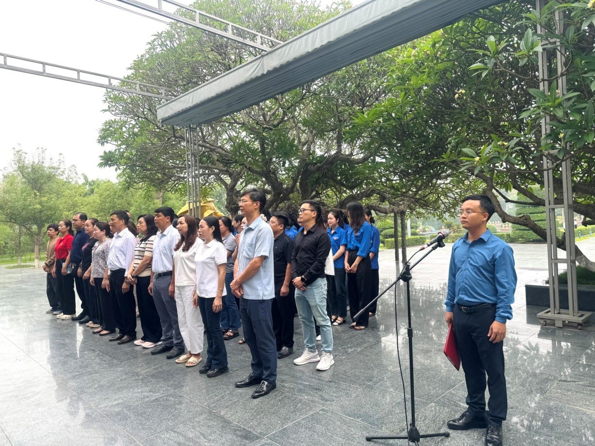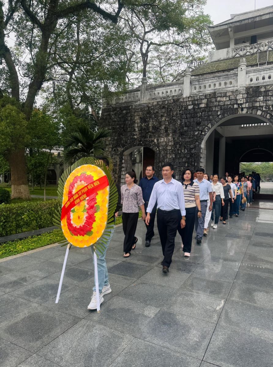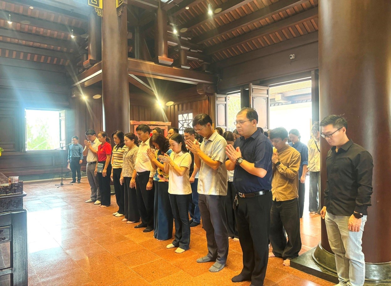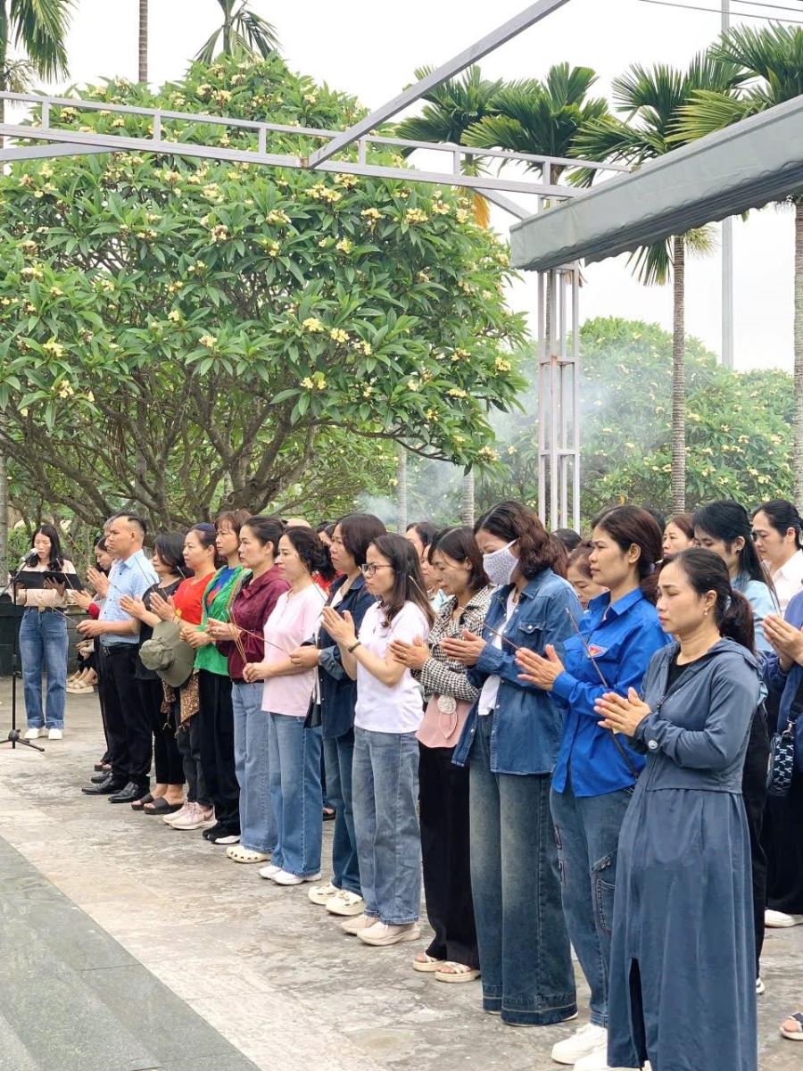 Đồng chí Nguyễn Thị Tuyết Mai, Hiệu trưởng nhà trường cùng các cán bộ quản lý, CBGV, CBVC và sinh viên dâng hoa, dâng hương tại Đề thờ các anh hùng liệt sỹ