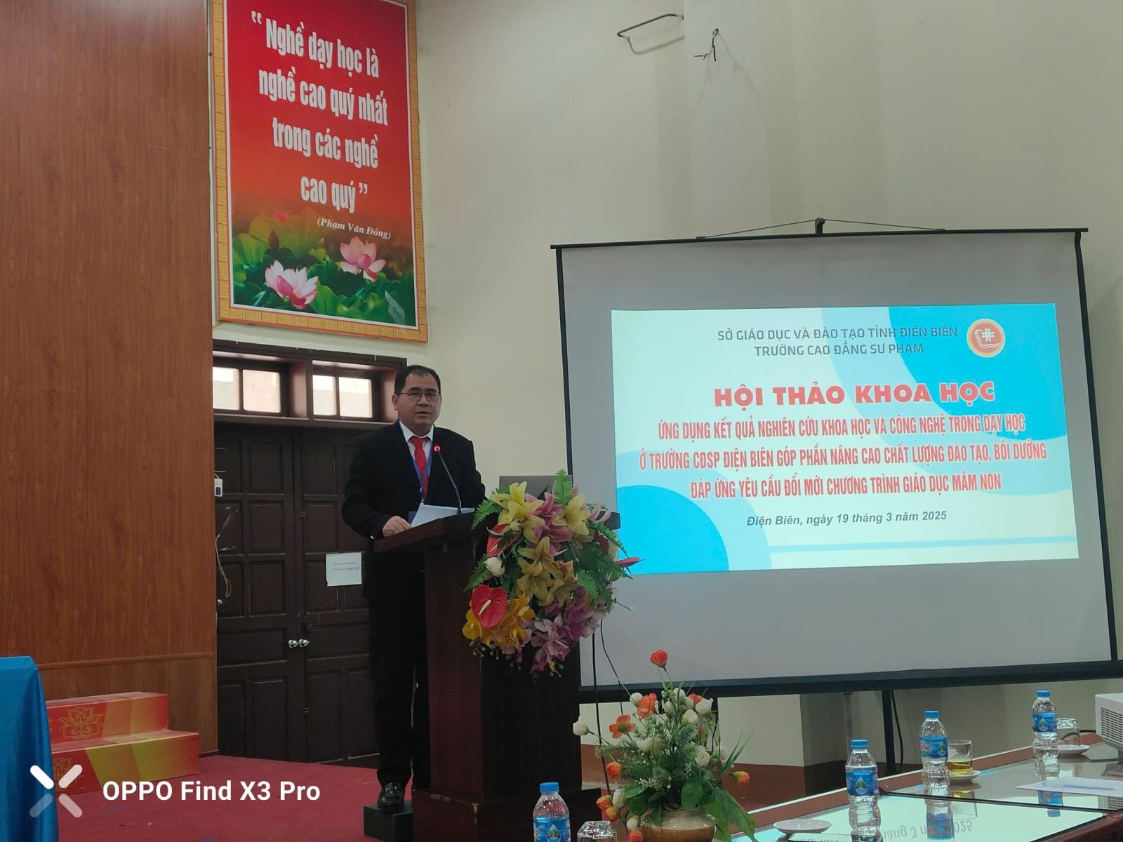 Ngày 19 tháng 3 năm 2025, Trường Cao đẳng Sư phạm Điện Biên đã tổ chức thành công Hội thảo Khoa học với chủ đề "Ứng dụng kết quả nghiên cứu Khoa học và Công nghệ trong giảng dạy ở Trường CĐSP Điện Biên góp phần nâng cao chất lượng đào tạo, bồi dưỡng đáp ứng yêu cầu đổi mới Chương trình Giáo dục Mầm non". Hội thảo là diễn đàn quan trọng để các nhà khoa học, giảng viên và cán bộ quản lý chia sẻ, trao đổi những kết quả nghiên cứu, sáng kiến nhằm nâng cao chất lượng đào tạo giáo viên mầm non, đáp ứng yêu cầu đổi mới của ngành giáo dục.