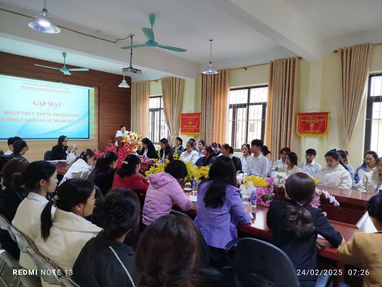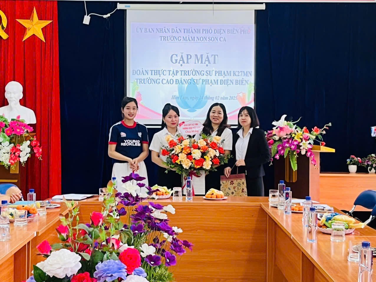 Thực hiện kế hoạch số 823/KH-CĐSP ngày 11/11/2024 của trường Cao đẳng Sư phạm Điện Biên về công tác thực tập sư phạm cho sinh viên năm thứ nhất ngành Giáo dục Mầm non năm học 2024 - 2025, sáng ngày 24 tháng 2 năm 2025, 147 sinh viên năm thứ nhất (K27MN) đến thực tập tại 4 trường mầm non trên địa bàn thành phố Điện Biên Phủ.